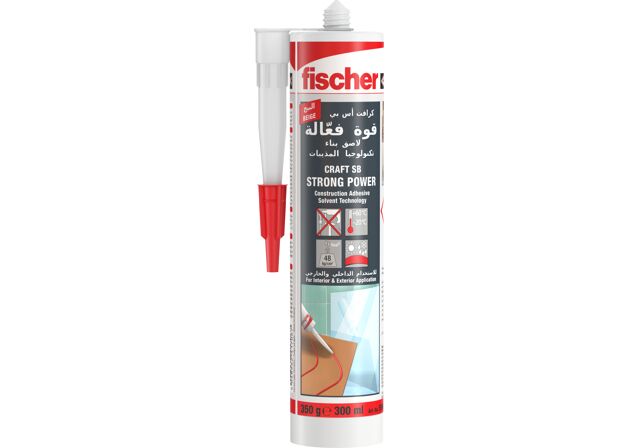 The fischer Craft SB is perfect for very strong and durable bonds of different building materials indoors as well as outdoors, including wood, gypsum, cork, chipboard, metal, stones or foamed polystyrene. The one-component mounting adhesive based on synthetic rubber in organic solvents is ideal for fixing mirrors, decorative elements, skirting boards, floor panels or ceramic tiles.