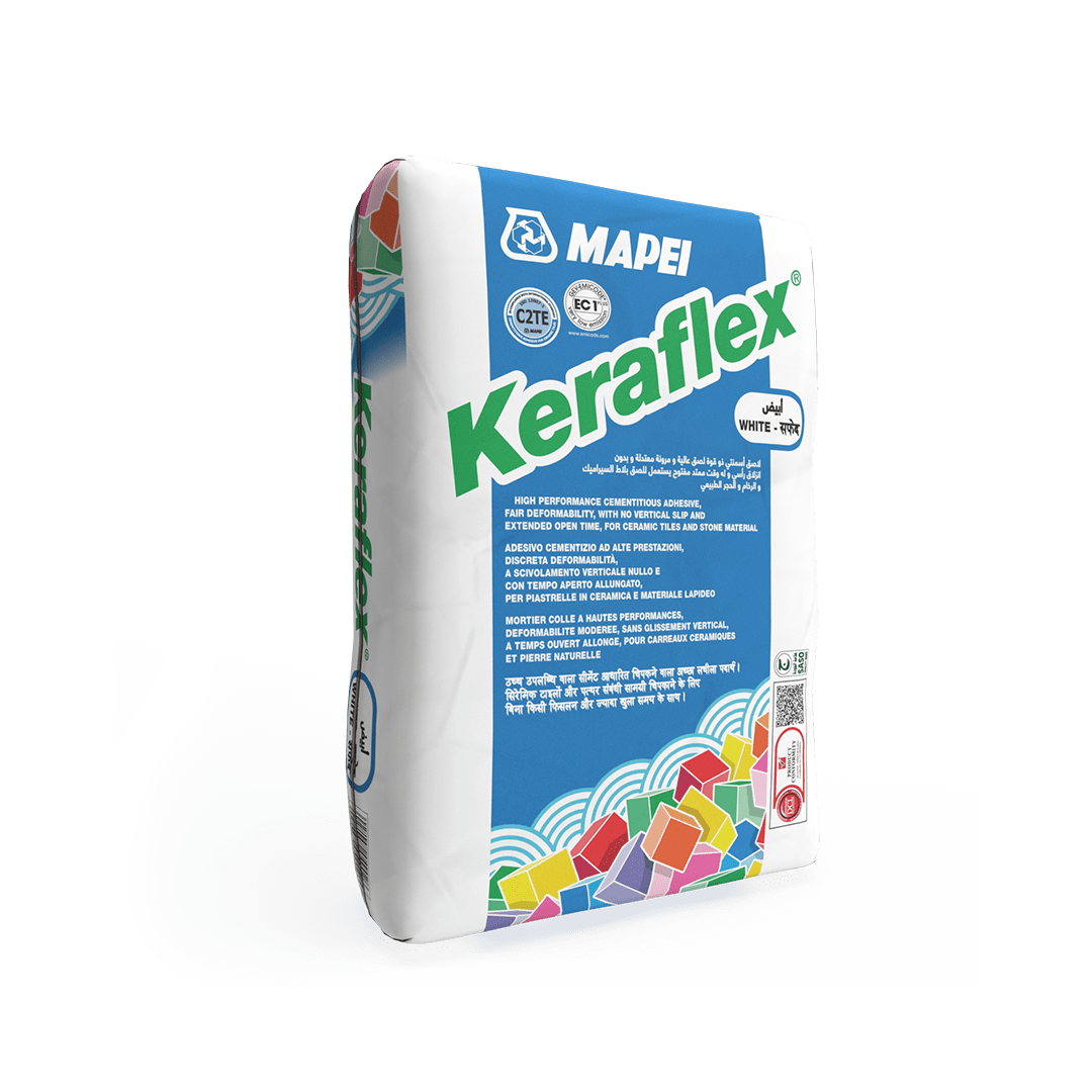 High-performance cementitious adhesive with no vertical slip and extended open time for ceramic and stone tiles.